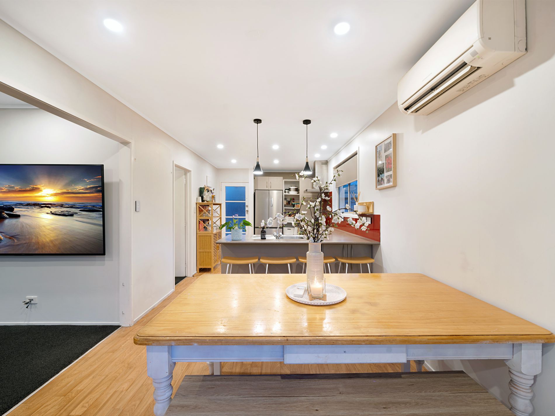 Beyond the welcoming French doors lies the heart of the home: open-plan kitchen, dining, and lounge designed for seamless family connection. Stay cozy year-round with the installed heat pump. This practical layout features three double bedrooms (two are wonderfully spacious, all with built-in storage) and a single bathroom, providing the ideal foundation for first-home buyers, growing families, or savvy investors.